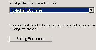 ![]() | Click on "Printing Preferences" to choose the type of paper you will be using as in the next picture.